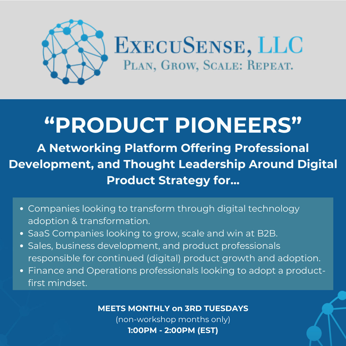 We’ve built a community of dedicated professionals who are entirely focused on growing and scaling product companies. Whether it’s a monetized product (SaaS) or you’re introducing digital products into your core service offerings to transform your customer experience, operational efficiency, or connect your supplier network, we help each other, share best practices, and connect one another to tested and trusted suppliers in the managed services, software development, automation, analytics, and marketing spaces. If you’re committed to developing a holistic roadmap that guarantees success, this is the group for you!